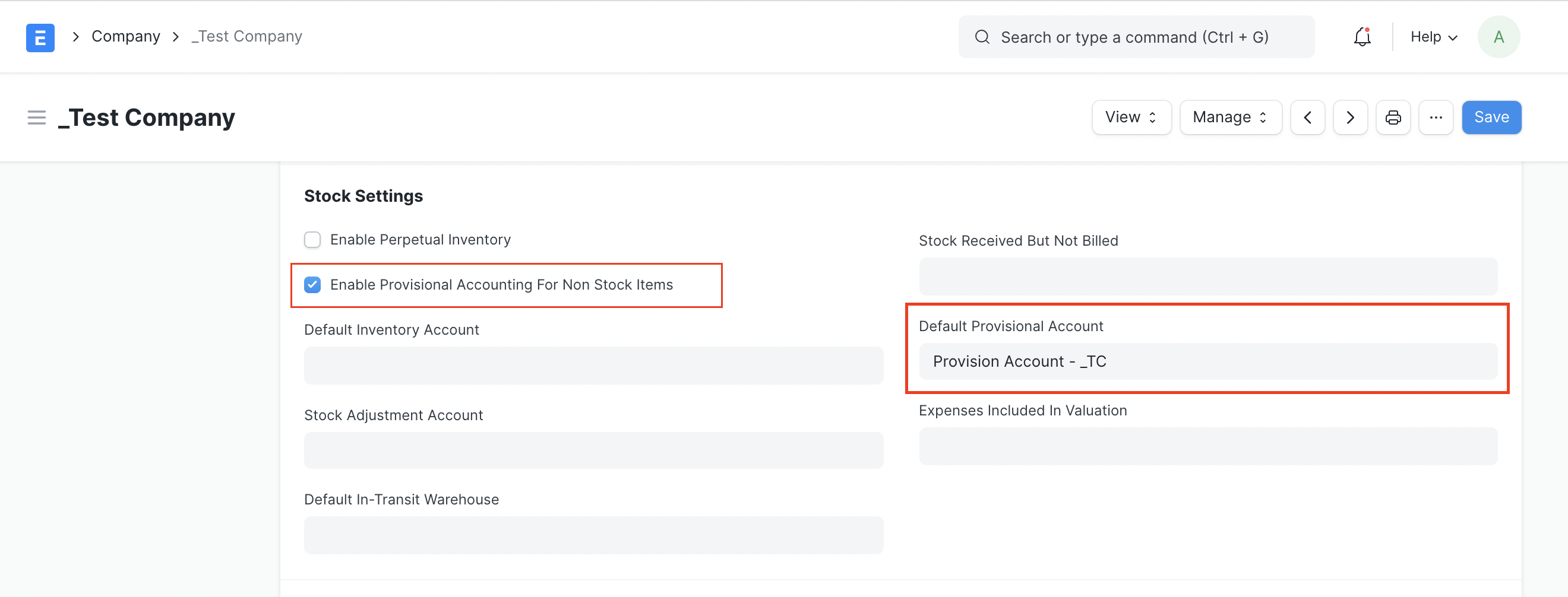 - Enable provisional accounting in the company master and set the default provisional account