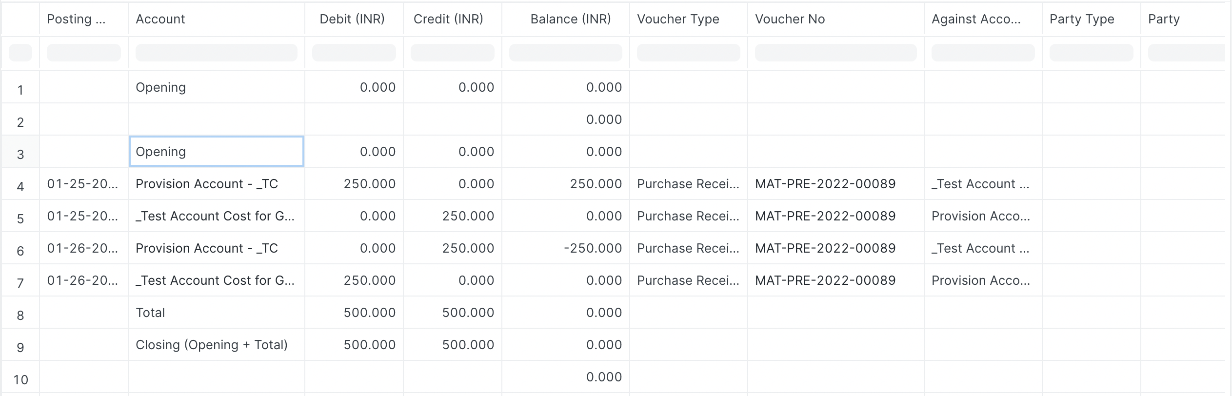 - Make a Purchase Invoice against the Purchase Receipt Accounting entries against the Purchase Invoice will be posted as usual