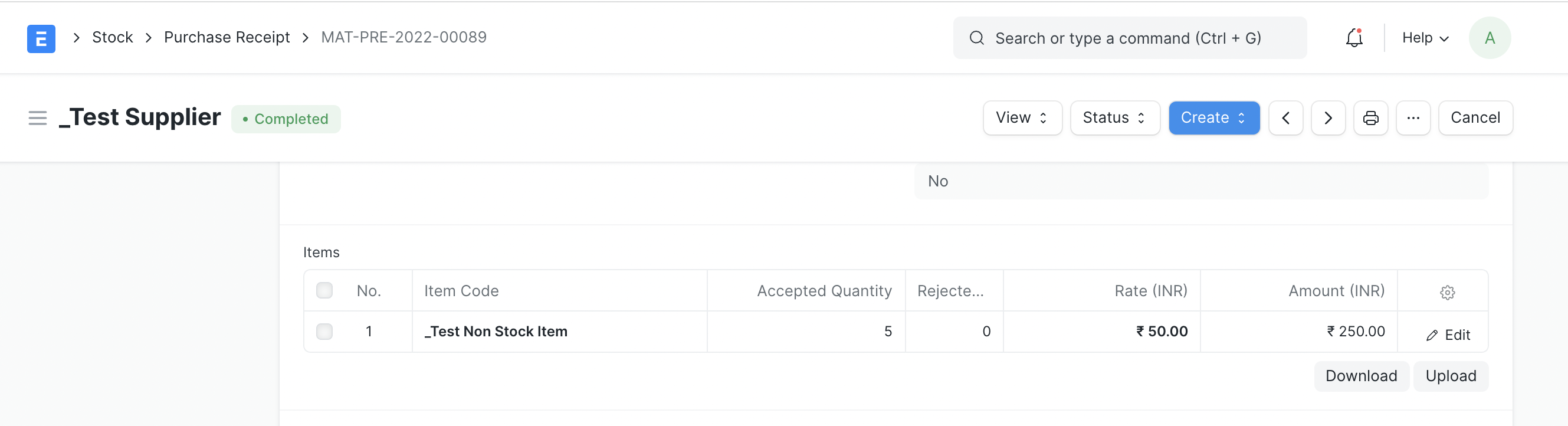 - Make a Purchase Receipt for a non-stock item